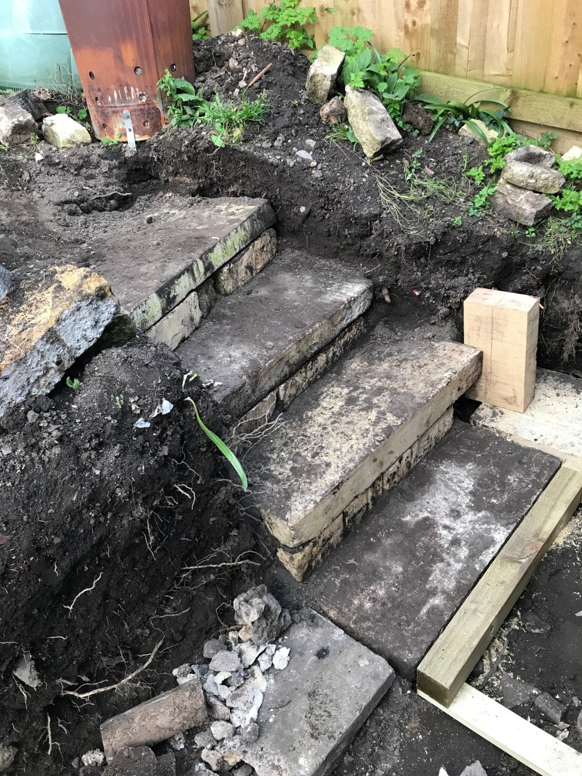 Nicola and Colin drove up to help me with the garden. I was busy cutting up timber to make a frame for the bottom part of the new path.